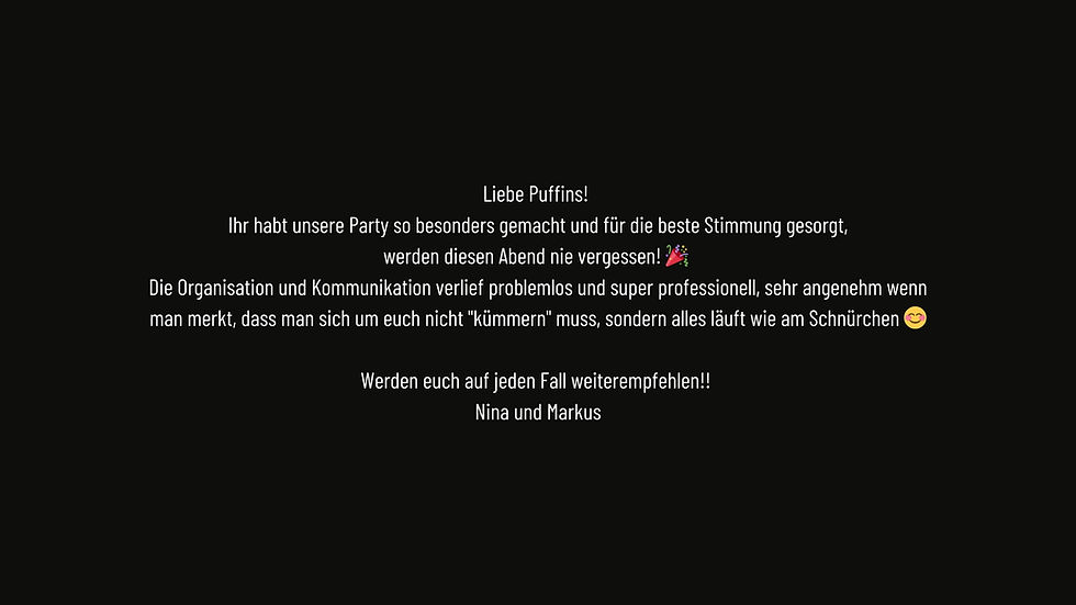 Ihr wollt eine volle Tanzfläche, ausgelassene Stimmung und einen unvergesslichen Abend? Say no more! Wir lieben es mit euch bis spät in die Nacht zu feiern und euer Event zu etwas ganz Besonderem zu machen!
